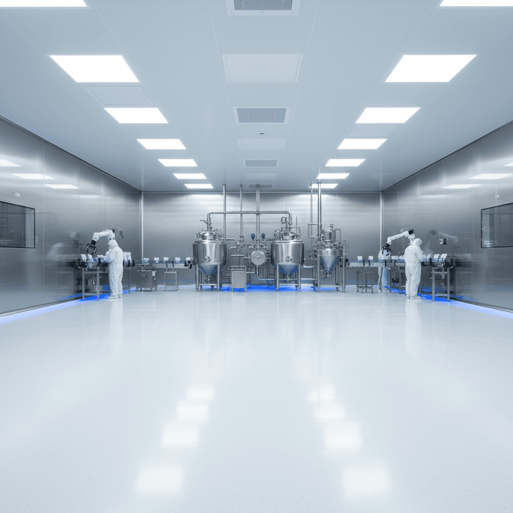 GMP-compliant flooring for drug manufacturing, compounding pharmacies, and biologics production. Seamless surfaces that withstand aggressive cleaning agents and meet FDA 21 CFR Part 211 requirements.